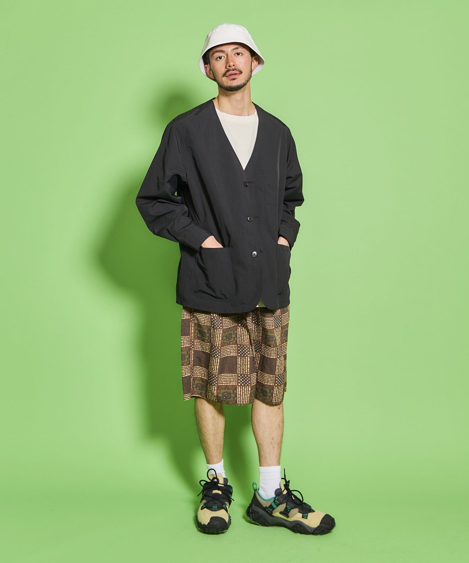 左胸にはインサイドポケットを、裾上にはポケットを両サイドに2つ配備。